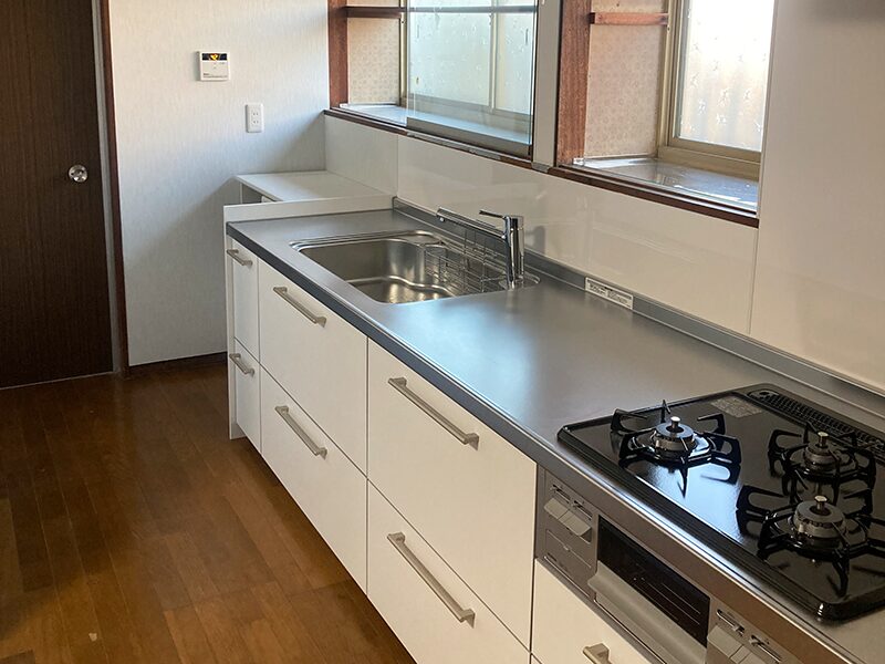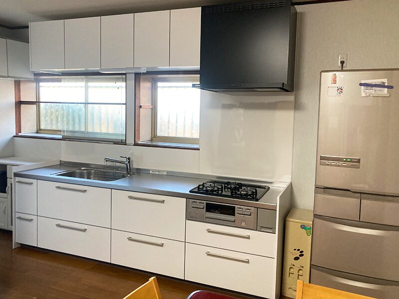 そこで、使いやすさ・清掃性・収納力を重視したリフォームを行い、明るく快適なキッチン空間へと生まれ変わりました。
