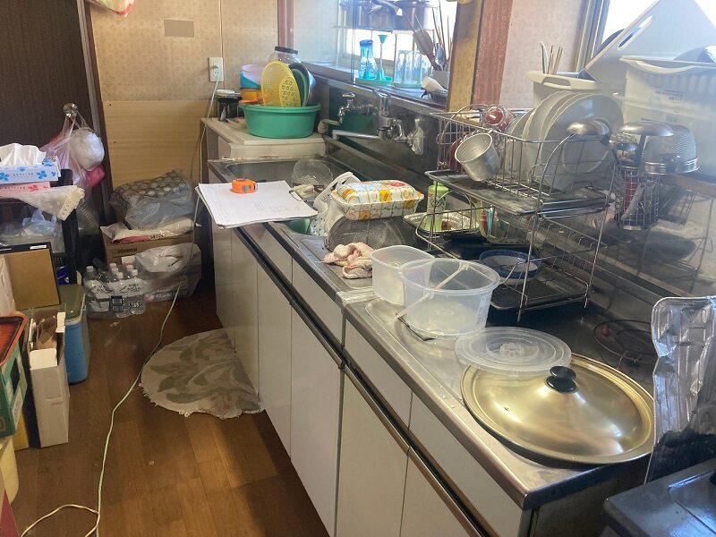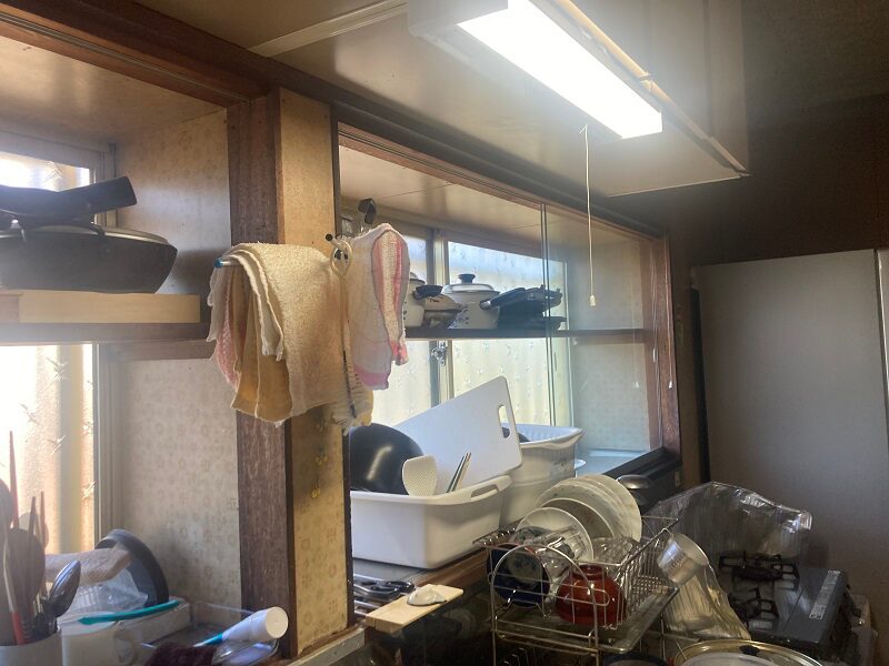 施工前のキッチンは、昔ながらの造りで収納スペースが限られており、調理器具や食器の置き場に困る状態でした。